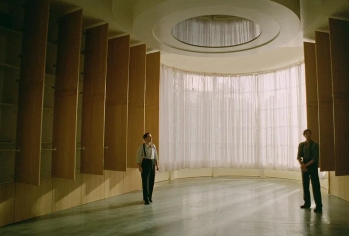 En la película se destaca todo lo que es arquitectónico, porque se refiere al estilo brutalista, de moda en el Reino Unido en los años 50, con construcciones minimalistas que muestran elementos desnudos como el concreto o ladrillo a la vista, que enfatiza elementos estructurales más que decorativos.